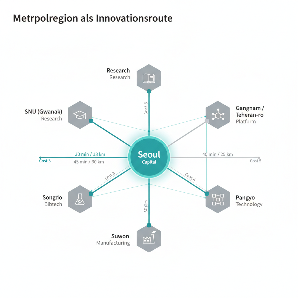 Jenseits der Stadtgrenzen Seouls wird der eigentliche wirtschaftliche Motor Koreas sichtbar: die Metropolregion als funktionales Netzwerk.