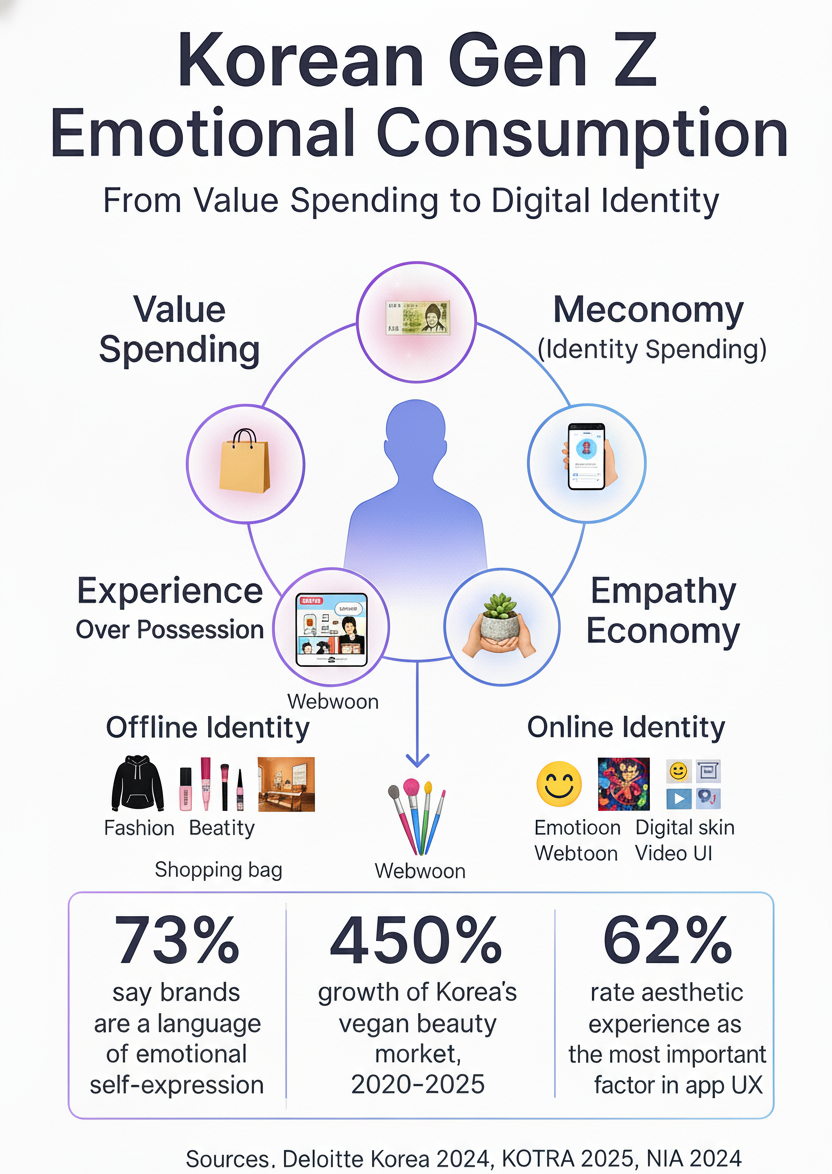 - 73% der koreanischen Gen Z betrachten Marken als Ausdruck ihrer emotionalen Identität (Deloitte Korea, 2024).