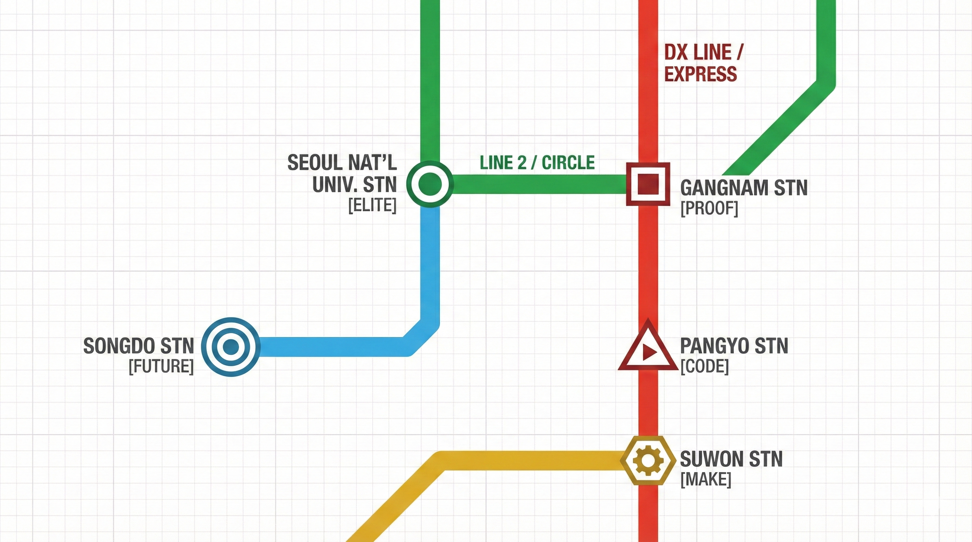 - DX Line (Red): Speed & Innovation (Gangnam ↔ Pangyo)